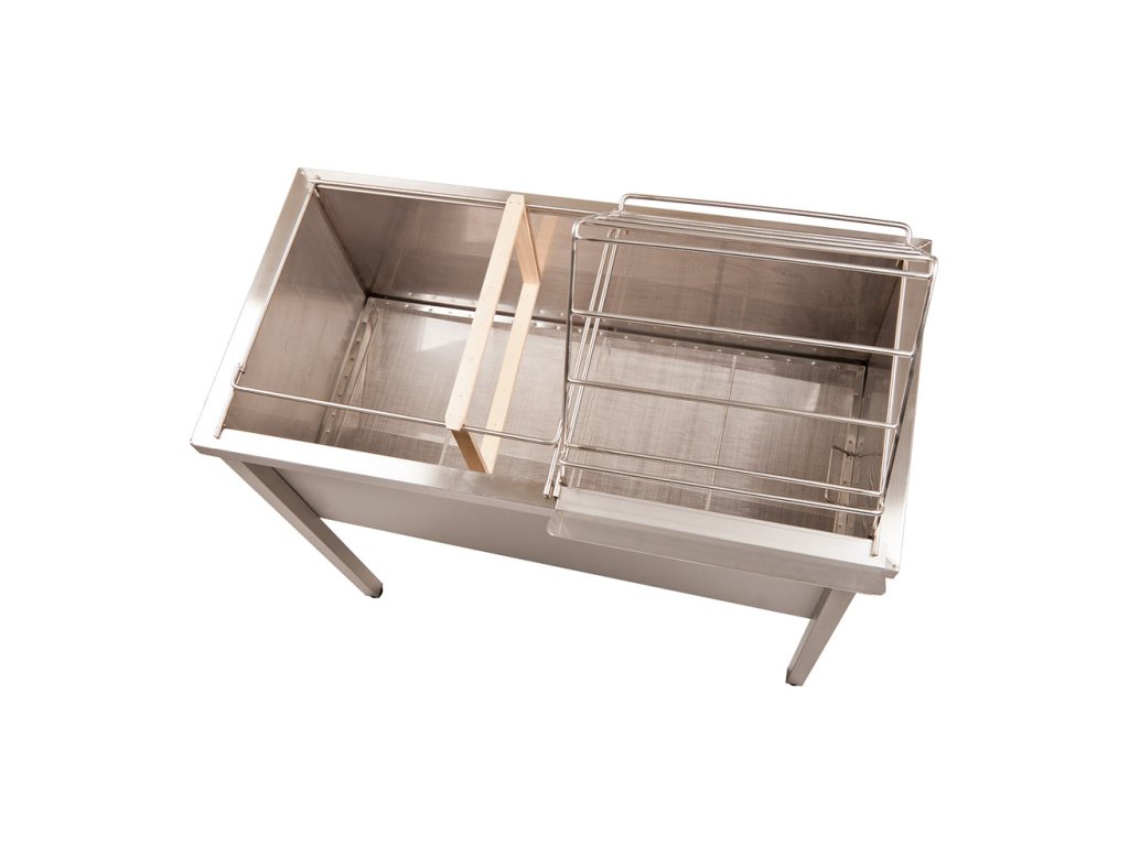 - uvnitř vany nerezové síto na odkapání medu z víček,