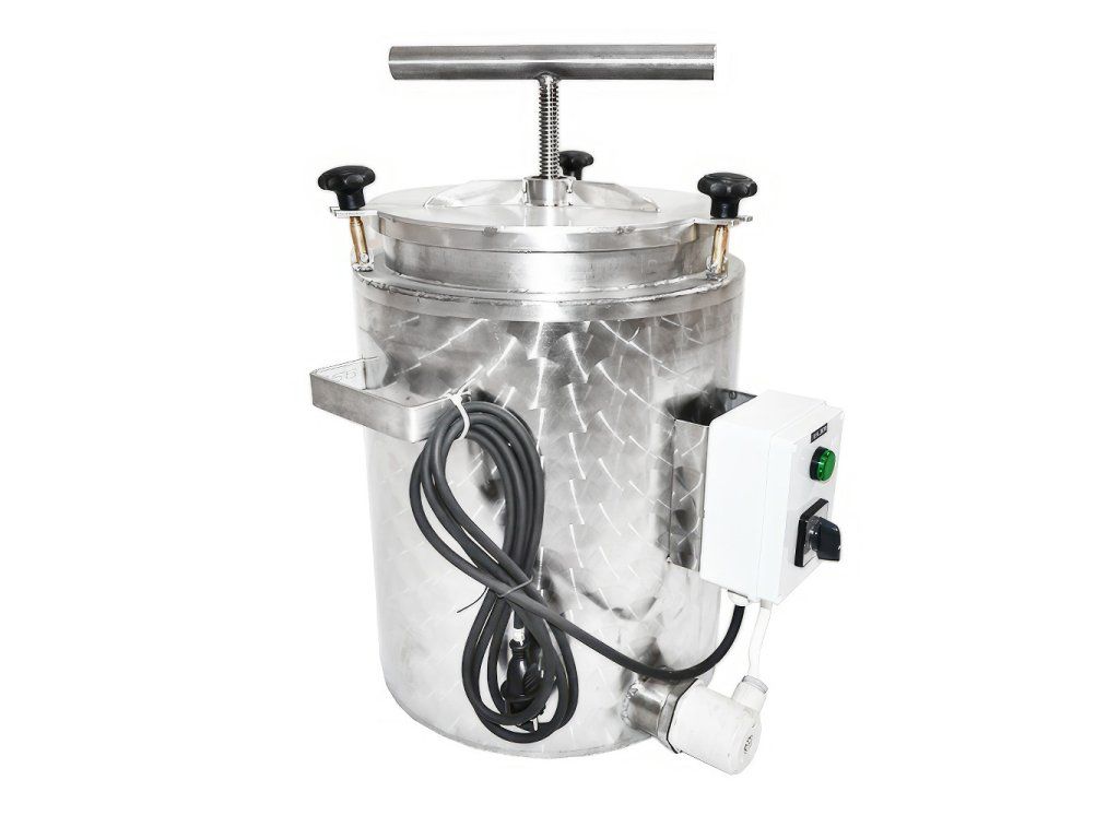 Tento celonerezový vařák spojuje parní tavení s integrovaným lisem, takže posunete práci s voskem na výrazně efektivnější a „čistší“ úroveň. Díky promyšlené konstrukci pomůže vytěžit ze souší i zbytky vosku, které běžně zůstávají v košilkách.